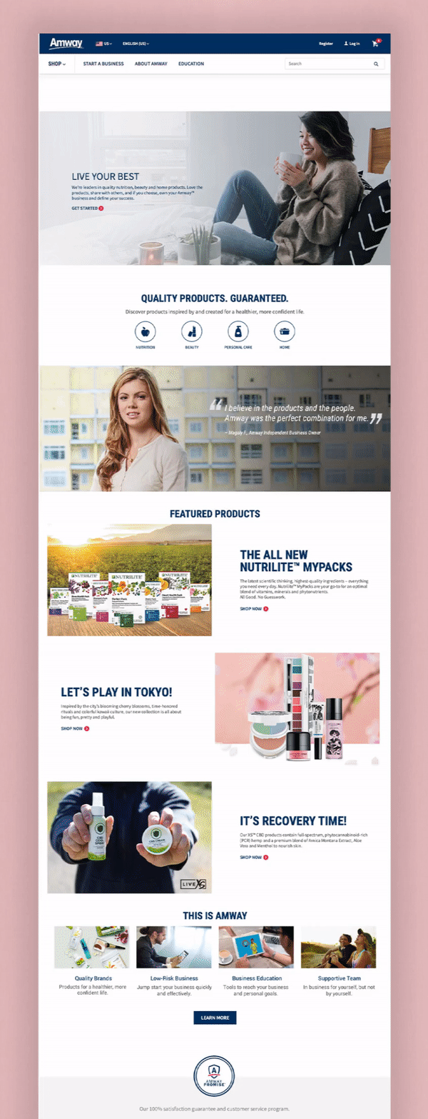 Amway traditionally relied on independent business owners to market and sell its products. However, with the rise of e-commerce as the dominant retailing platform, we were tasked with transforming amway.com into a captivating shopping experience and establishing the brand as a recognized lifestyle brand.